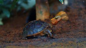 3. 啃咬瓜肉:确认瓜果美味后,小乌龟开始用小嘴啃咬瓜肉。它那认真的样子,让人忍不住想笑。